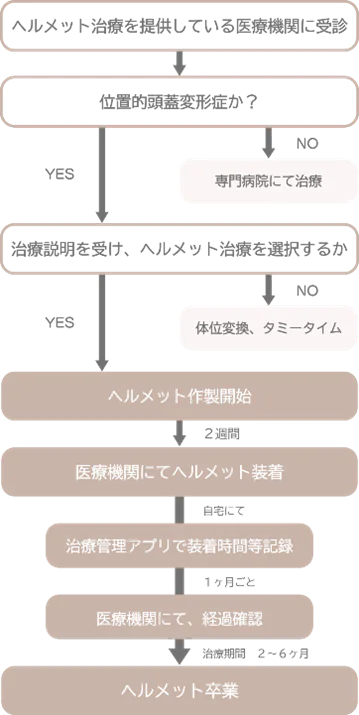 ※治療期間は、3~6ヶ月が標準的な期間ですが、赤ちゃんの月齢や頭蓋変形の程度によって異なるため、それ以上かかることもあります。